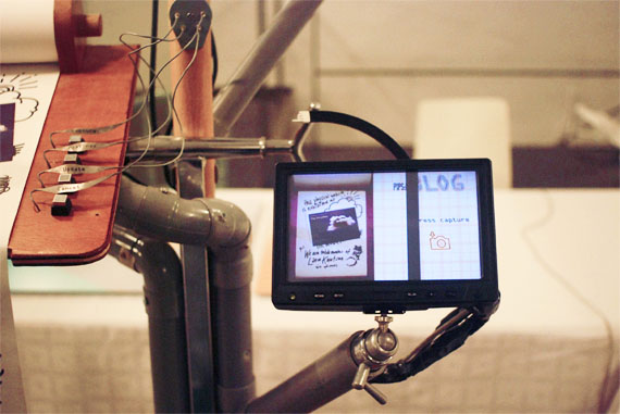 This lives site was a project I worked on for PIPS:lab. The concept was from Keez Duyves, he had a working prototype of the site and I rebuilt a better version with the help of Thijs De Wit and Jakob Schlotter. The site was last seen in public at design week Milan and is sure to be on the move soon. The site is the first physical internet site, the web version of the live site is a panoramic live feed of where ever the live site is. The Blog roll is paper, posts are made by drawing on the paper and selecting you upload type and the post is made.